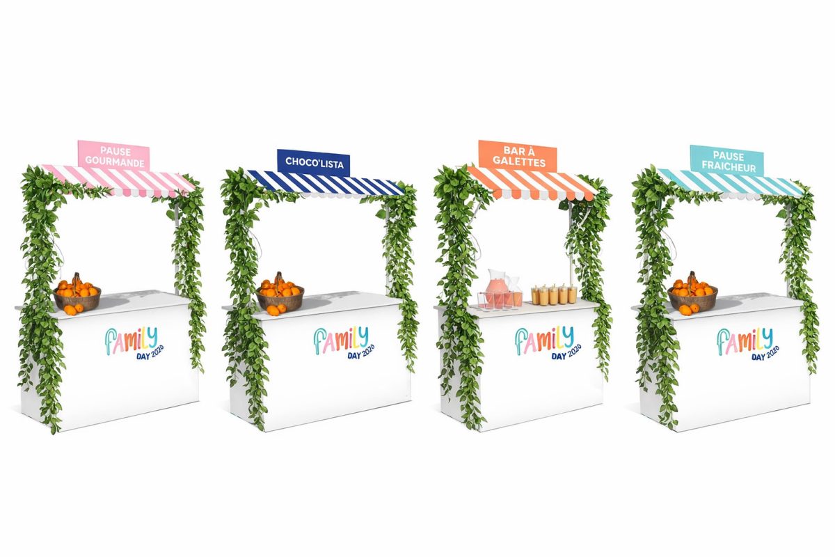 On a conçu un mini marché : 4 guinguettes comme 4 univers, avec une scénographie commune pour créer une vraie lecture d’ensemble.